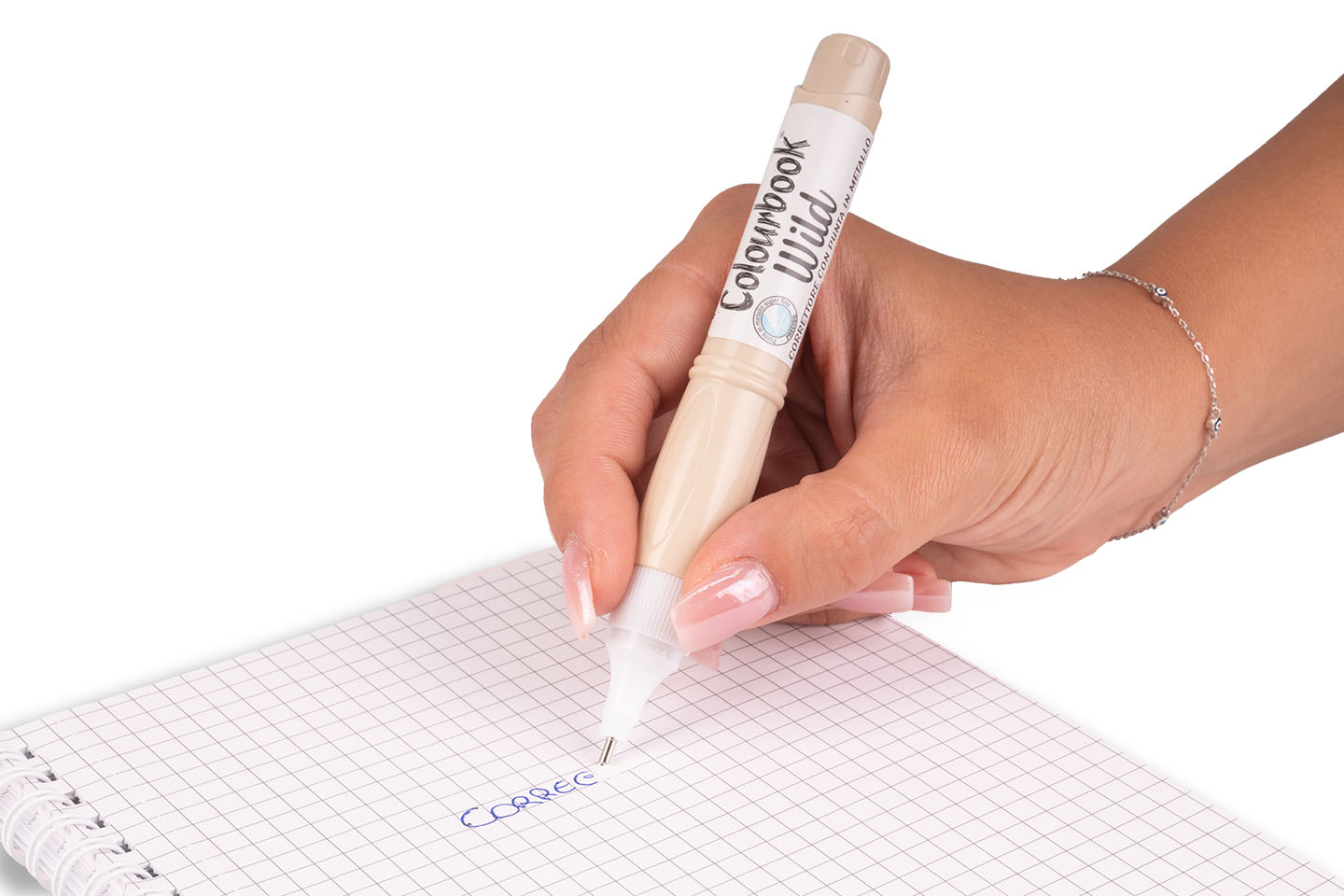 Ami i colori tenut? Correttore a penna con punta in metallo e fusto colorato da 7 ml.