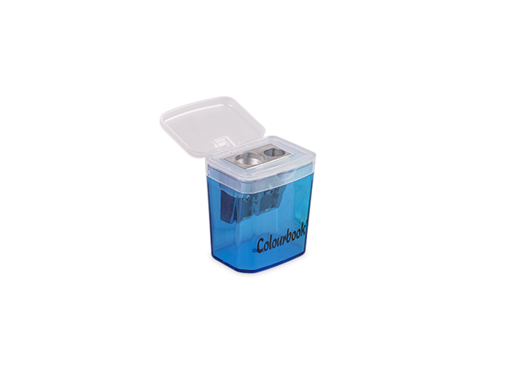 Temperamatite colorato in metallo e plastica con 2 fori e un capiente contenitore, un accessorio 2 in 1 da portare sempre con sé!