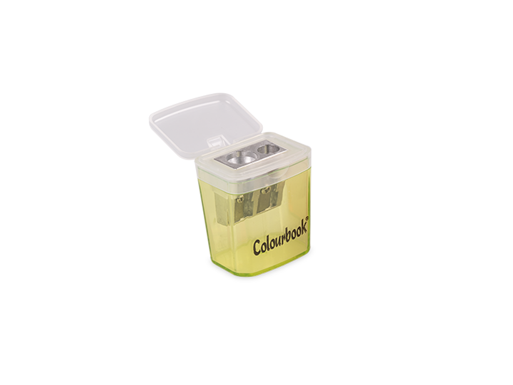 Temperamatite colorato in metallo e plastica con 2 fori e un capiente contenitore, un accessorio 2 in 1 da portare sempre con sé!
