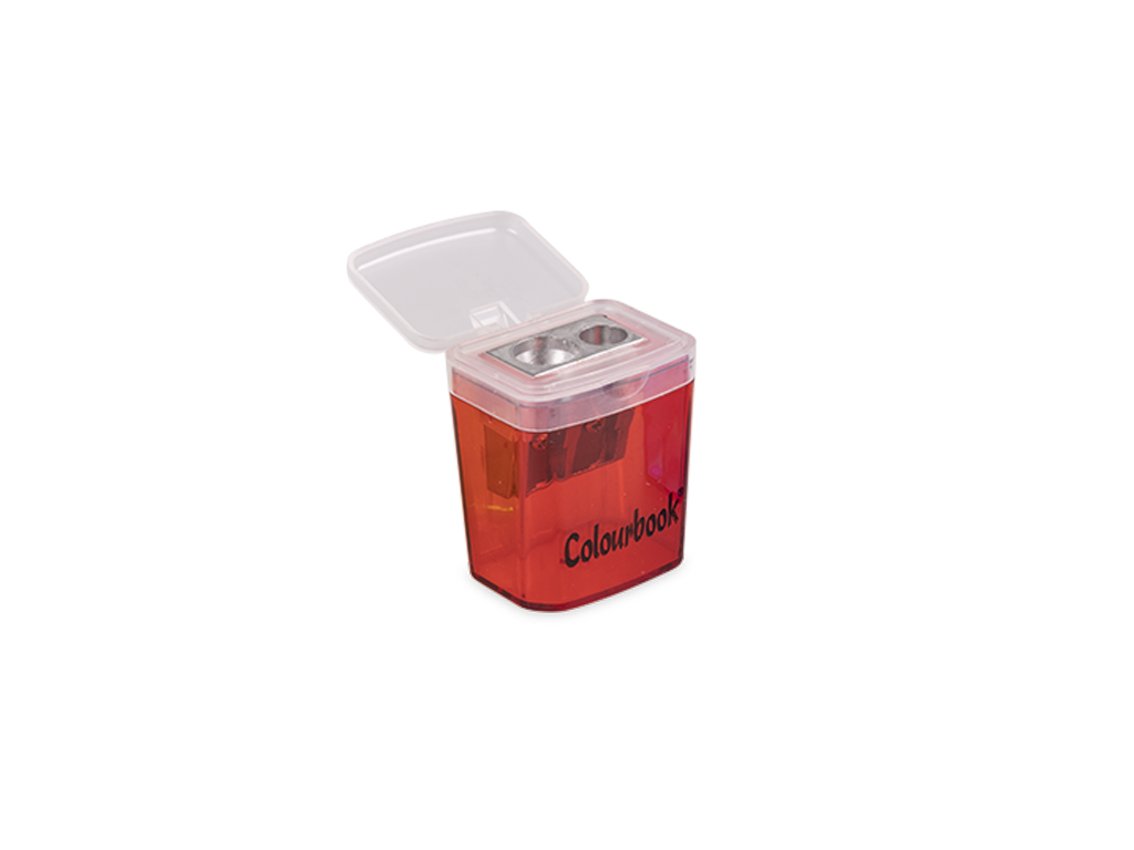 Temperamatite colorato in metallo e plastica con 2 fori e un capiente contenitore, un accessorio 2 in 1 da portare sempre con sé!
