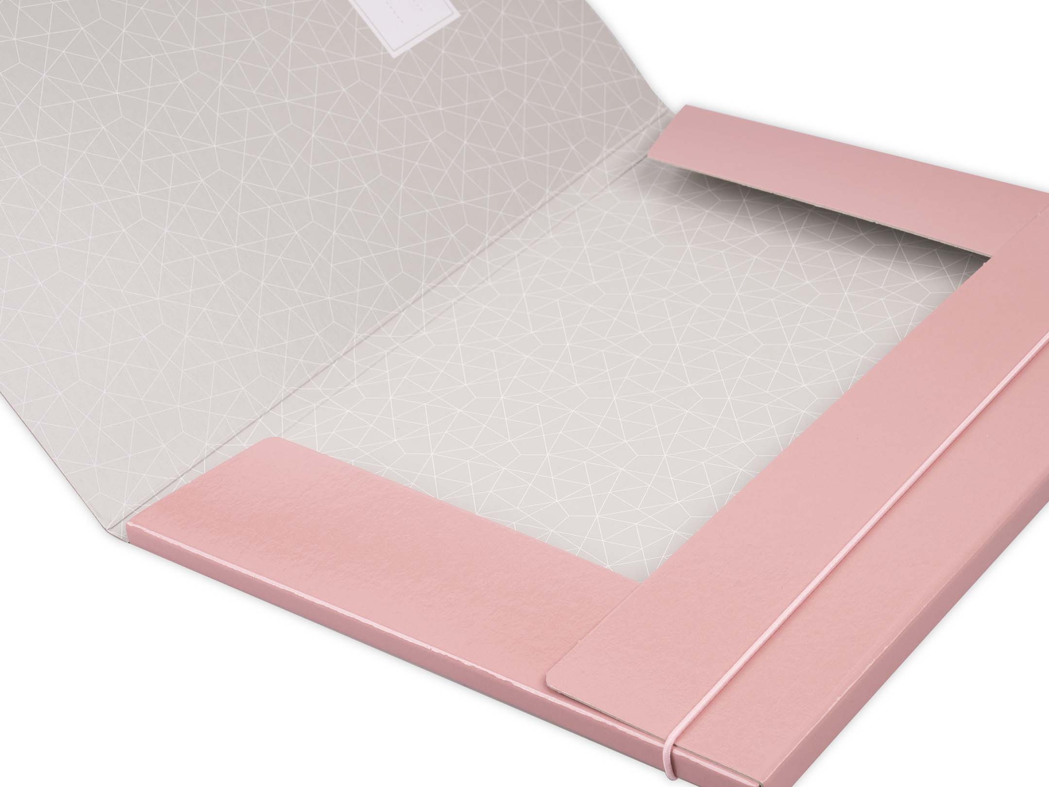 Cartella cartonata con elastico tondo in tinta con dorso 1 cm, per conservare al meglio numerosi documenti importanti, fino al formato A4.