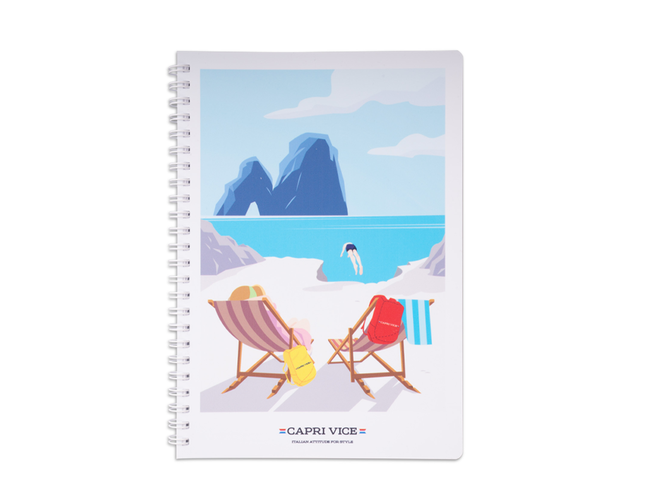 I quaderni Colourbook x Capri Vice in formato A5 con spirale cromata regalano un ricordo dei momenti passati in spiaggia, delle settimane spensierate vissute con i propri amici.