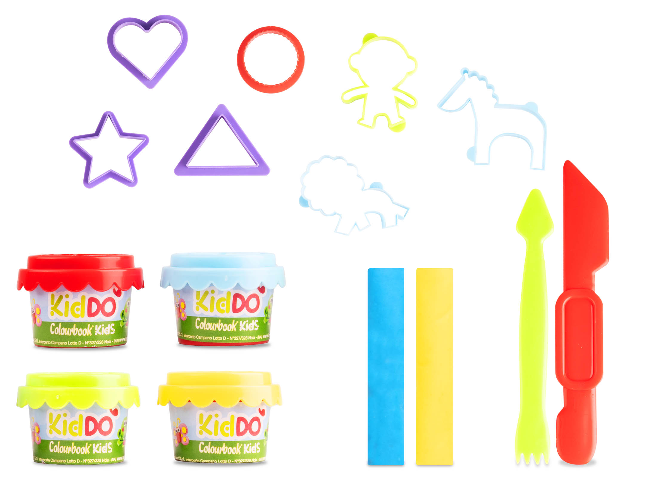 Libera la creatività e la fantasia dei tuoi piccoli con KidDO', il colorato set di plastilina ricco di divertimento e infinite possibilità! Cosa c'è dentro?