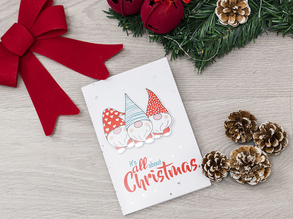 Tre elfi barbuti con dei fantastici cappellini, cantano “We wish you a merry Christmas!” a chiunque meriti i tuoi auguri!