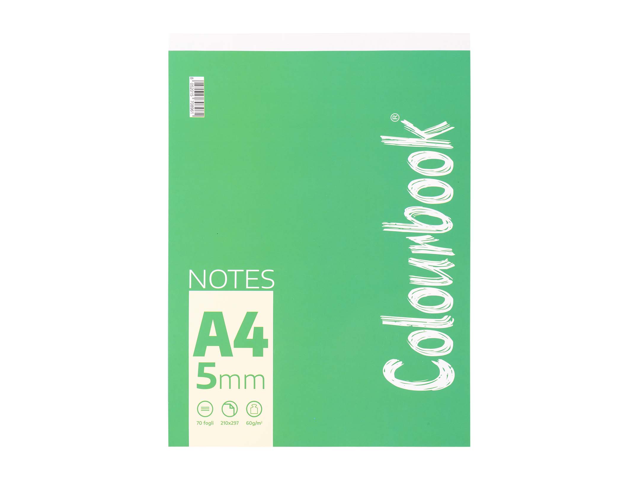 Block notes con brossura fresata con punti metallici da 70 fogli preforati e carta da 60 grammi. Retro in cartoncino rigido.