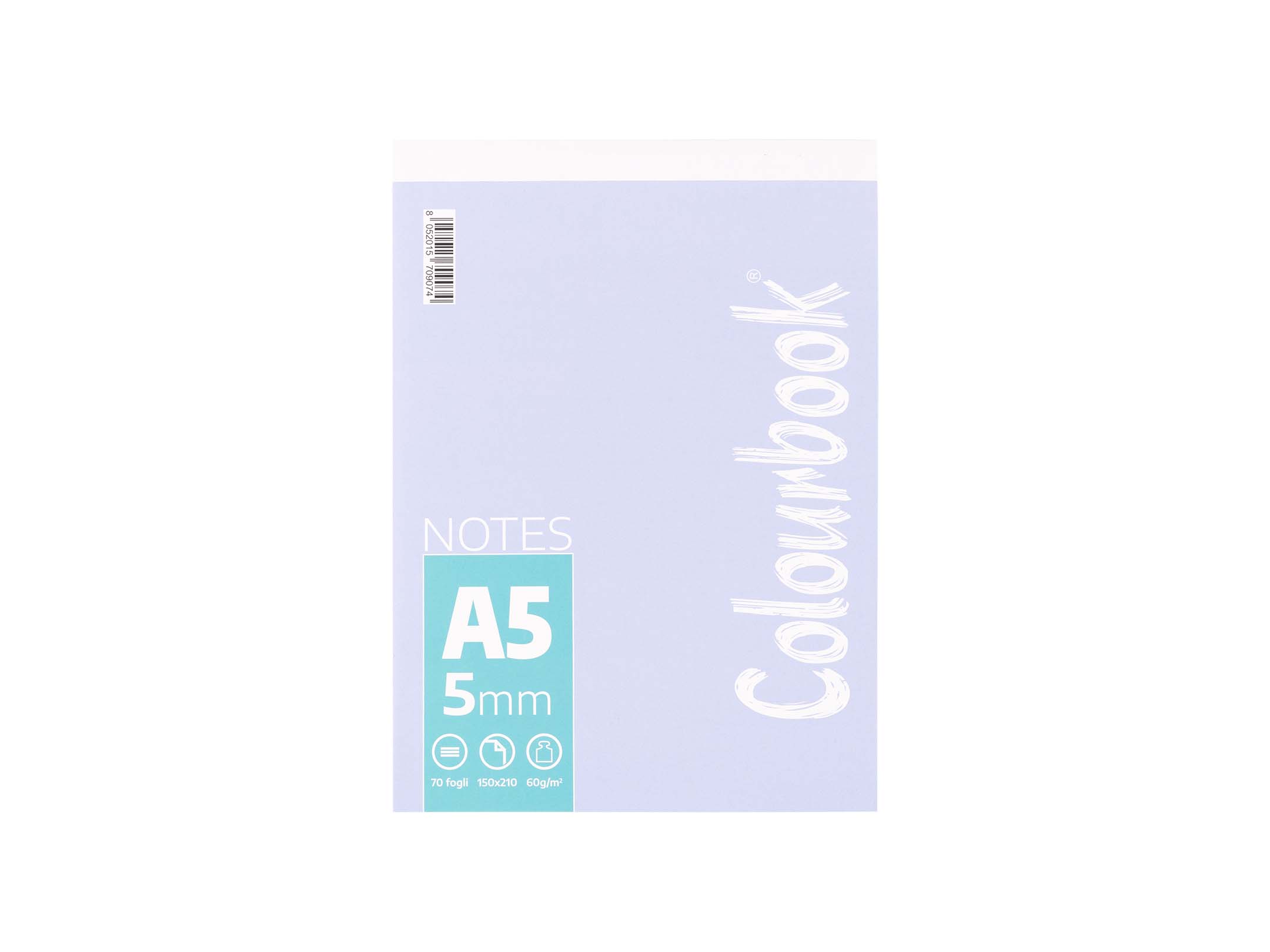 Block notes con brossura fresata con punti metallici da 70 fogli preforati e carta da 60 grammi.