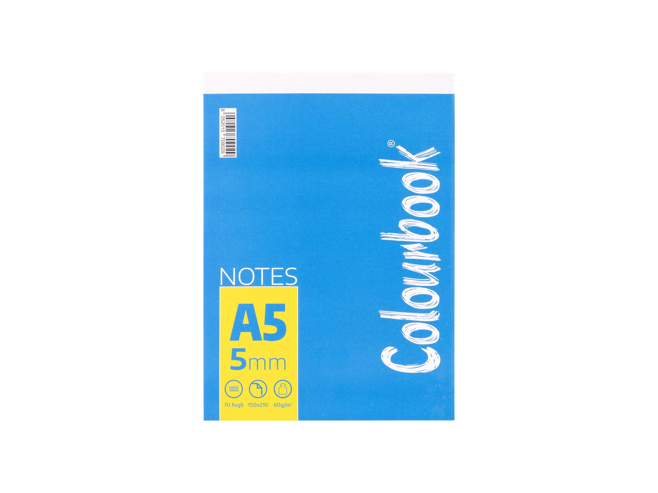 Block notes con brossura fresata con punti metallici da 70 fogli preforati e carta da 60 grammi.