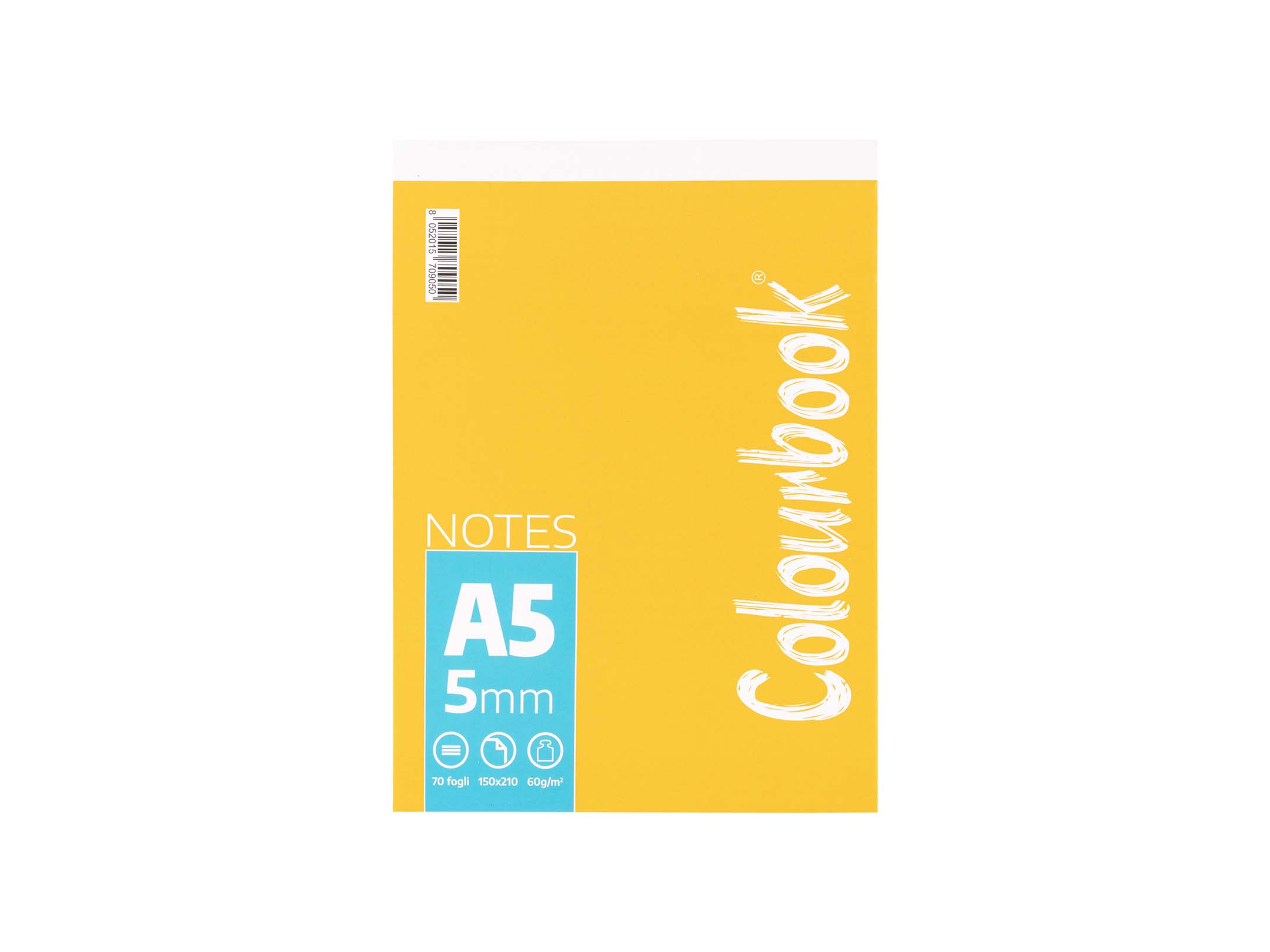 Block notes con brossura fresata con punti metallici da 70 fogli preforati e carta da 60 grammi.