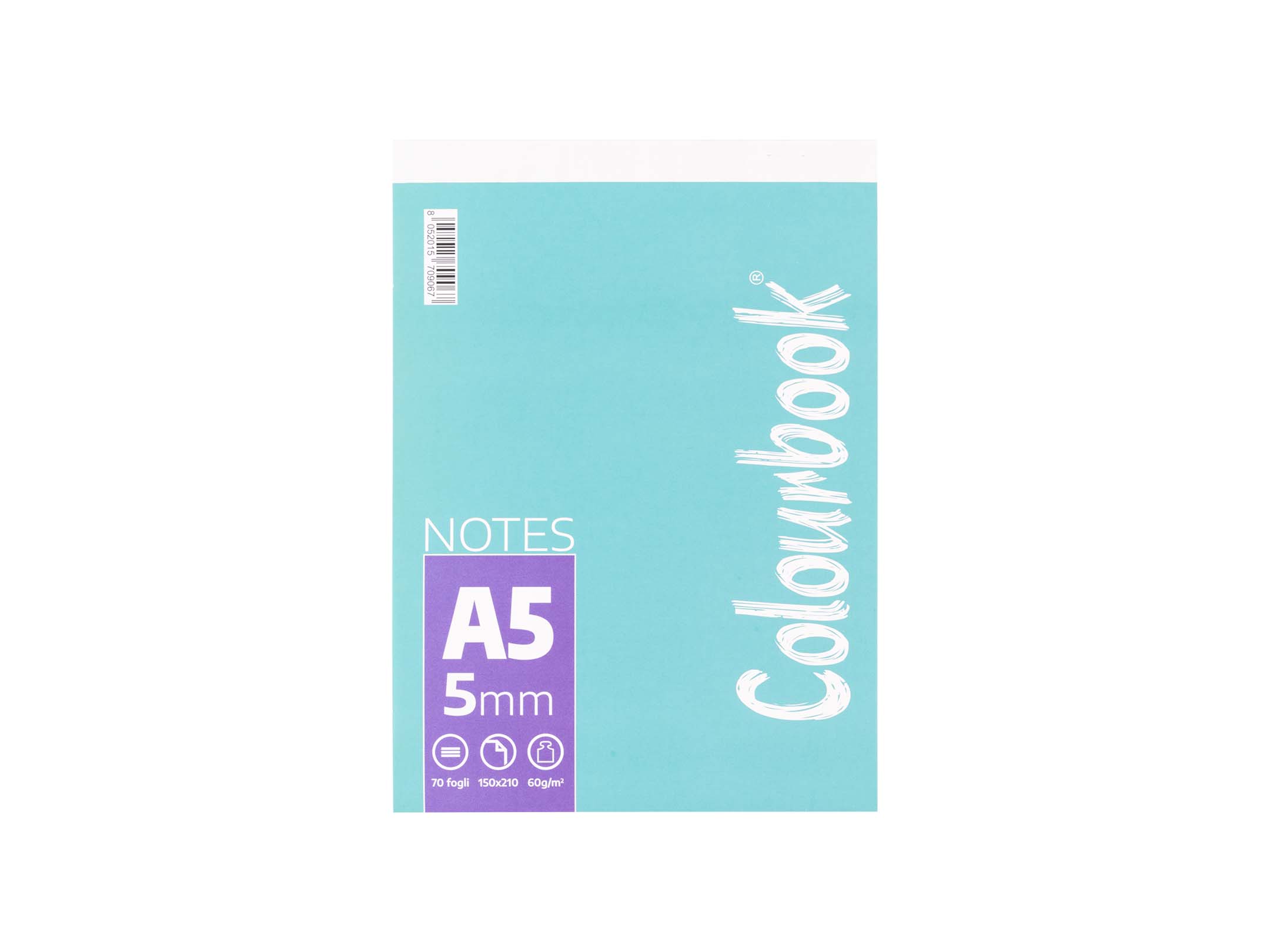 Block notes con brossura fresata con punti metallici da 70 fogli preforati e carta da 60 grammi.