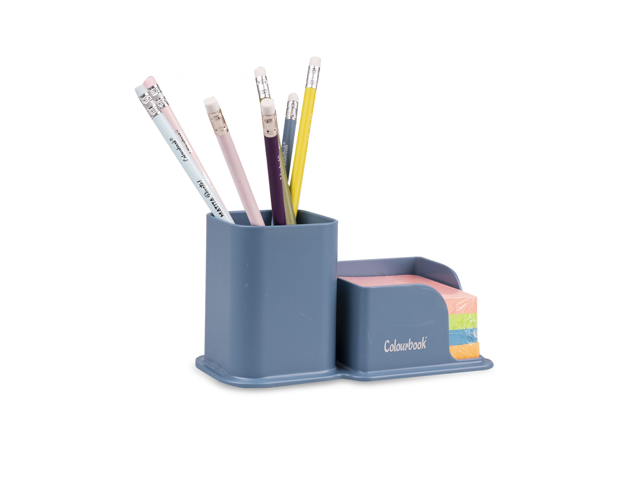 Disponibile in 4 colori, può contenere contenere penne, evidenziatori e altri oggetti utili, oltre ai blocchetti per le note. Un pratico e organizzato accessorio per la tua scrivania, realizzato in resistente plastica dura.
