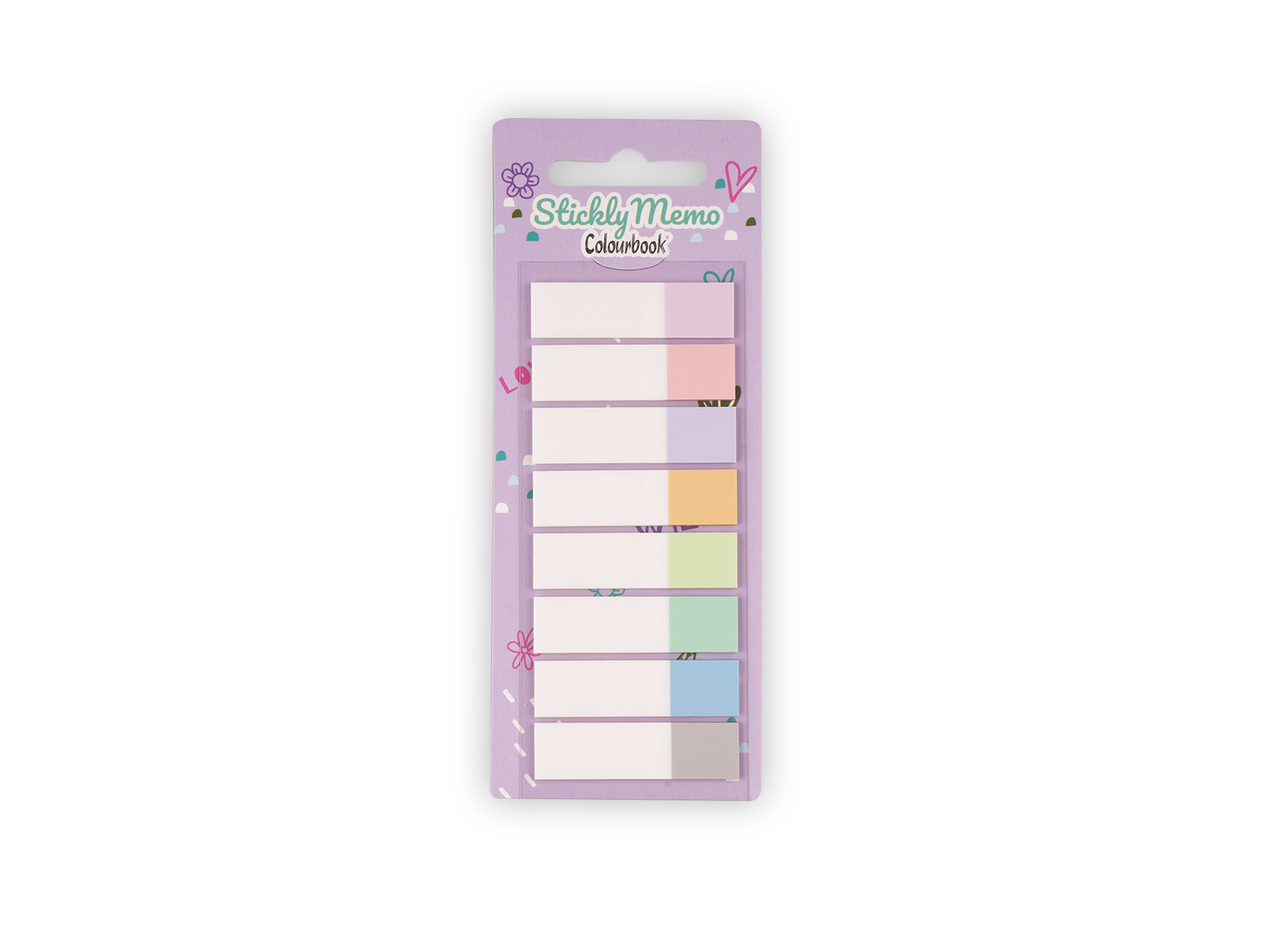 5 versioni di mini segnapagina in plastica da utilizzare come segnalibro o per scrivere con penna, matita e pennarello indelebile. Divertiti con quelli trasparenti per non coprire il testo sottostante. Scegli la tua versione preferita, e buono studio!