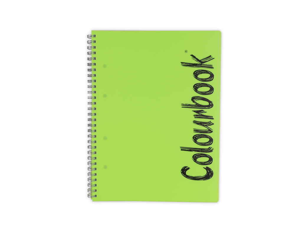 Quaderno Midi con spirale in metallo cromato e copertina in PPL (polipropilene). Prodotto da 80 fogli con fori per archiviare e carta da 70 grammi.