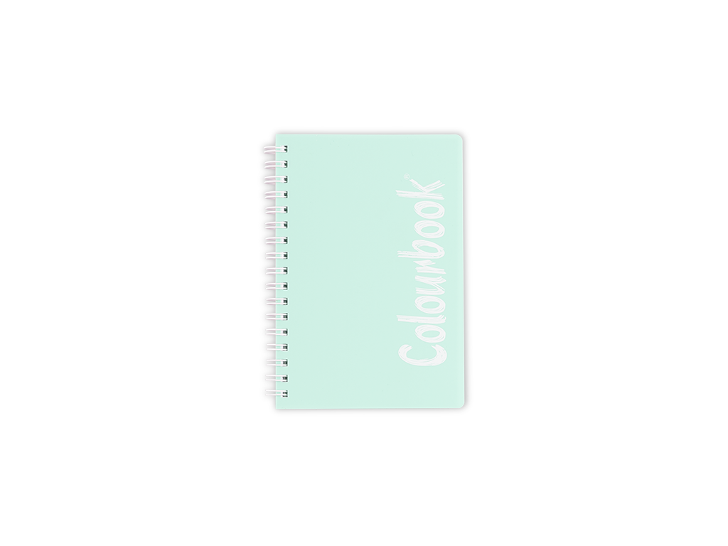 Quaderno A7 con copertina in PPL (polipropilene) e spirale in metallo bianco. Prodotto da 80 fogli con fori per archiviare e carta da 70 grammi.