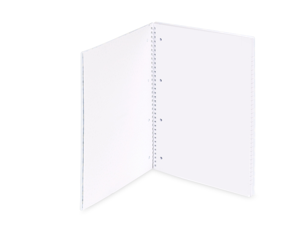 Quaderno Maxi A4 con spirale in metallo cromato e copertina in PPL (polipropilene). Prodotto da 80 fogli con fori per archiviare e carta da 70 grammi.