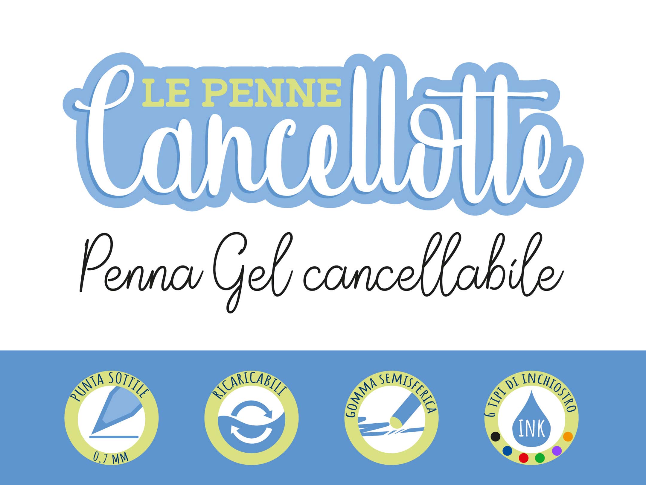 La collezione di penne Cancellotte è l'ideale per bambini che frequentano la scuola elementare, ma sono perfette anche per chiunque voglia aggiungere un tocco di colore e tenerezza alle proprie giornate. La gomma a semisfera rimuove facilmente l'inchiostro termosensibile senza danneggiare il foglio. Il fusto soft touch garantisce morbidezza al tatto. Scegli la tua penna cancellabile preferita e rendi la scrittura divertente e creativa! Inchiostro terminato? Nessun problema! Acquista le ricariche qui.