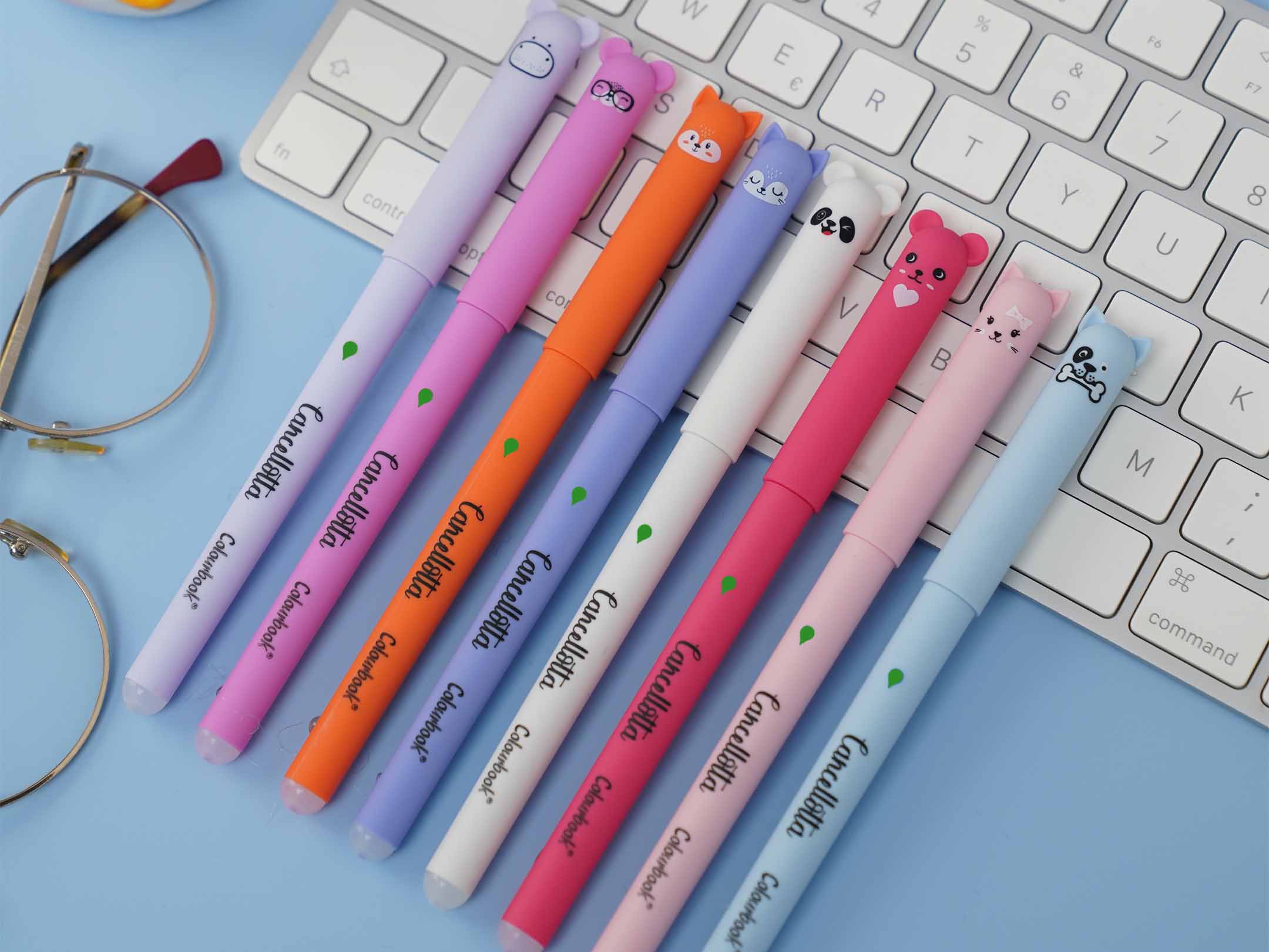 La nuova collezione si arricchisce con la penna verde e 10 animaletti (chimera, cane, gatto, volpe, orso, ippopotamo, panda, topino, quokka e black cat). Le penne gel Cancellotte sono l'ideale per bambini che frequentano la scuola elementare, ma sono perfette anche per chiunque voglia aggiungere un tocco di colore e tenerezza alle proprie giornate. La gomma a semisfera rimuove facilmente l'inchiostro termosensibile senza danneggiare il foglio. Il fusto soft touch garantisce morbidezza al tatto Scegli la tua penna cancellabile verde preferita e rendi la scrittura divertente e creativa! Inchiostro terminato? Nessun problema! Acquista le ricariche qui.