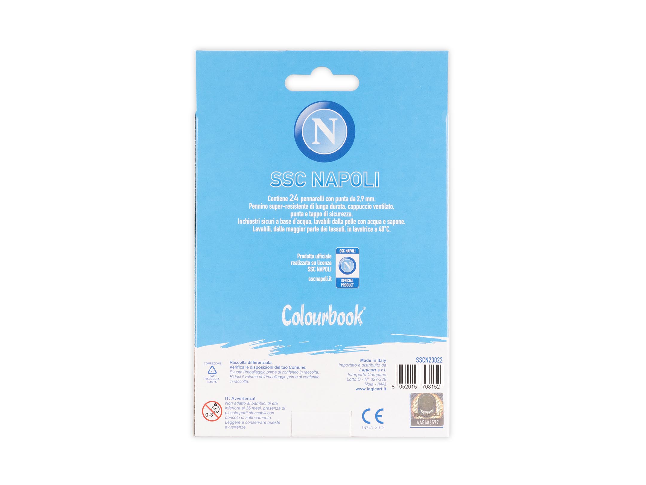 Pennarelli SSC Napoli, in confezione da 24 colori vibranti! Questi pennarelli sono perfetti per dare vita ai tuoi disegni e creare opere d'arte che riflettono la tua passione per la squadra. Con una punta fine da 2,99 mm, potrai ottenere dettagli precisi e linee definite.